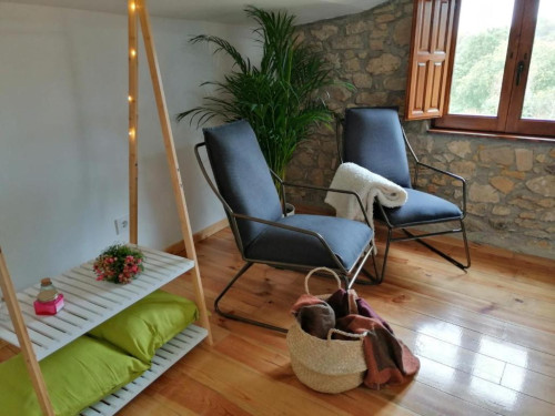 Sagasta cuenta con dos alojamientos totalmente equipados que se pueden alquilar juntos o por separado. Casa Pepín, con dos dormitorios (uno con cama matrimonial y el otro, con dos individuales)y dos baños completos además de salón cocina con dos sofás cama uno individual y otro de 1,50 (doble) y comedor. El llagar, dispone en la planta baja de un pequeño salón cocina con sofá cama de 1,50 (doble) y baño, completo. La parte superior está compuesta por una amplia habitación con cama matrimonial, 2 butacas y zona de trabajo. La zona trasera tiene un amplio jardín con un porche con mesas de merendero y barbacoa. La parte delantera tienen un porche cubierto donde hay 2 butacas y un sofá, estilo chill out, con bonitas vistas a la montaña.